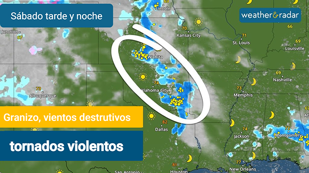 La amenaza de condiciones meteorológicas adversas continuará mañana, con tormentas que afectarán a última hora de la noche a ciudades como Kansas City (Missouri), Wichita (Kansas) y Oklahoma City. Una vez más, es posible que se produzcan granizo de gran tamaño, vientos destructivos y tornados de gran intensidad.