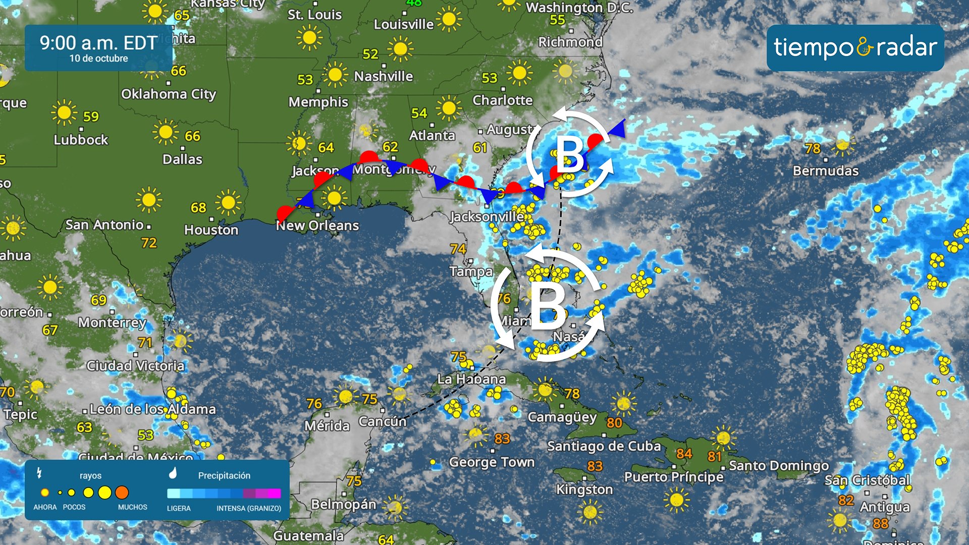 Un frente frío está moviéndose sobre el Valle de Tennessee lentamente y estará pasando por el sureste para finales de esta semana. El extremo final de este frente dejará un poco de energía que se combinará con un sistema de baja presión que se mueve al norte desde el Caribe. Para el sábado este sistema ayudará a halar el frente frío y a traer un poco más de aire seco desde el norte sobre gran parte de Florida, pero será mayormente notable, por ahora, para el norte y centro de Florida.