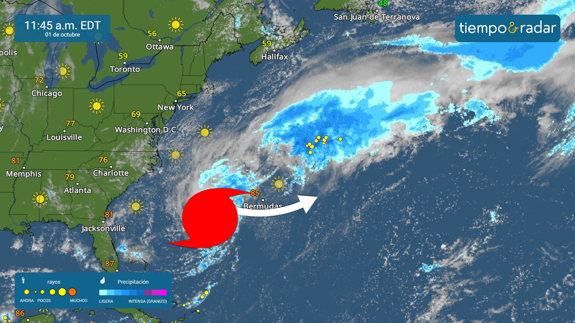 Imelda pasará sobre el sur de Bermuda, muy cerca. Vientos, oleaje, marejada y fuertes lluvias.