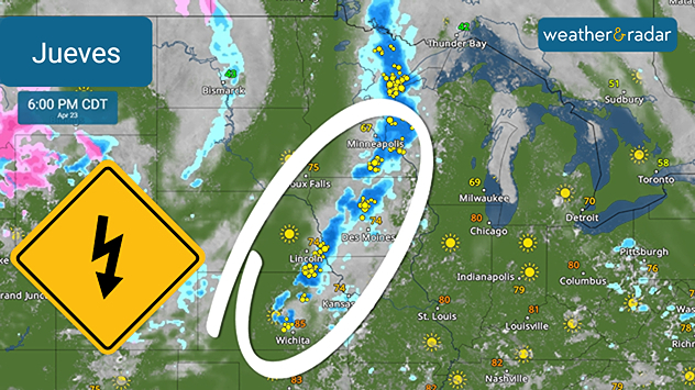 A partir del jueves, un sistema de bajas presiones, acompañado de un potente frente frío, se desplazará hacia el este desde las Montañas Rocosas y chocará con una masa de aire cálida y húmeda. Esto provocará tormentas intensas desde Wichita Falls (Texas) hasta el norte de Minnesota y Wisconsin, especialmente desde el este de Kansas hasta Minneapolis. Se prevén tornados, vientos destructivos y granizo.