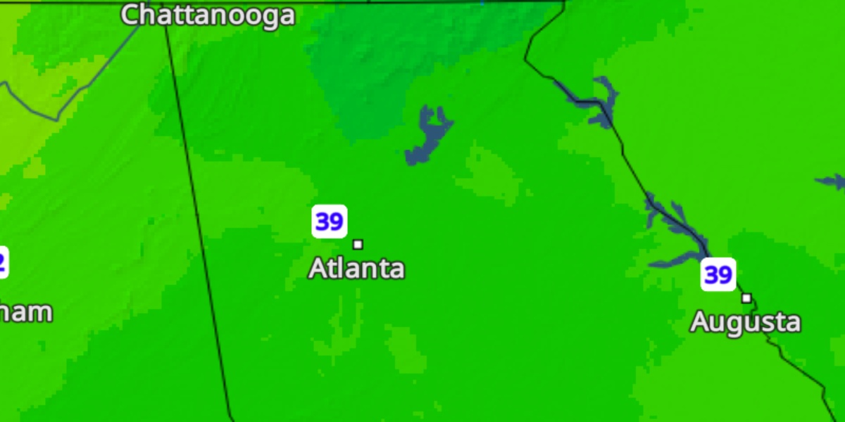 Otra noche fría para el norte de Georgia. Mínimas entre 39-41ºF