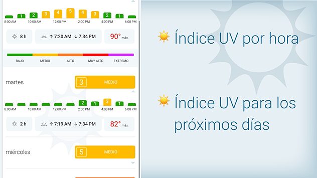 Pronóstico del Índice UV para 6 días